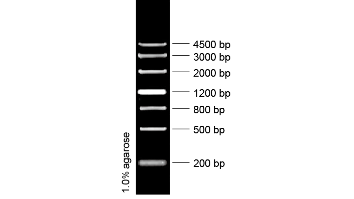 Marker III 是由单独制备的 PCR 产物混合而成,共有 7 条 DNA 片段,已加入上样缓冲液,可直接电泳,每次上样 6