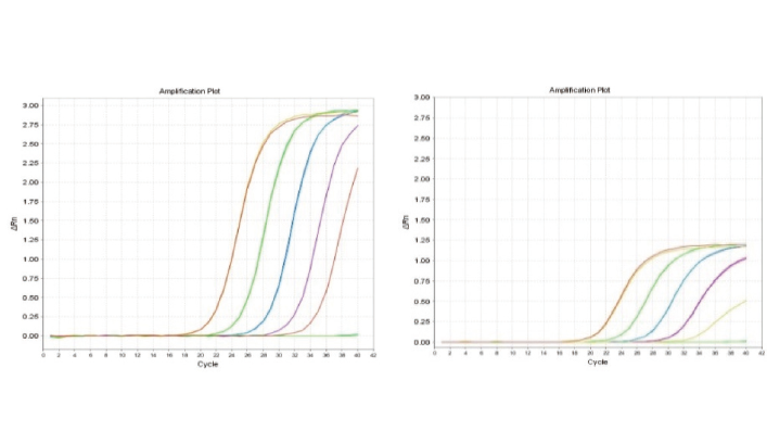 2. 本产品经过优化特别有利于 Taq 酶发挥其 5’-3’外切酶活性,使荧光信号可以充分释放。此外,SuperReal PreMix(Probe) 也充分降解了探针荧光淬灭基团的信号释放,经过上述优化, 用相同量的模板将得到更强的信号。