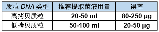备注:如果所提质粒为低拷贝质粒或大于10 kb的大质粒,应加大菌体使用量,同时按比例增加P1、P2、E3、EBT的用量。
